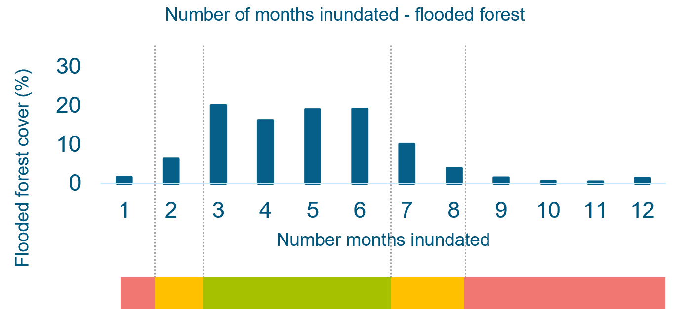 The suitability of an area for flood forest reforestation partly relies on the optimal duration of yearly inundation of an area.
